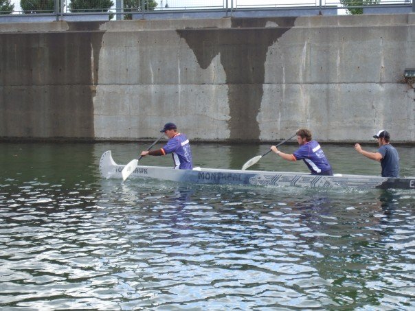 Graduate students in Montreal, CA paddle a canoe made of cement. - View Full Image